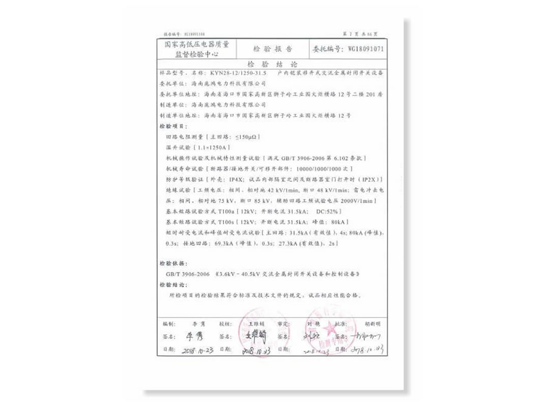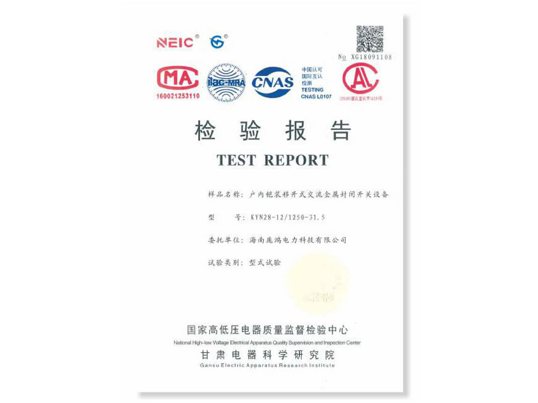 检验报告-户内铠装移开式交流金属封闭开关设备